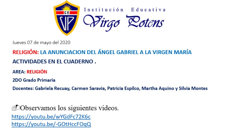 ANUNCIACIÓN DEL ÁNCANGEL GABRIEL A LA VIRGEN MARÍA